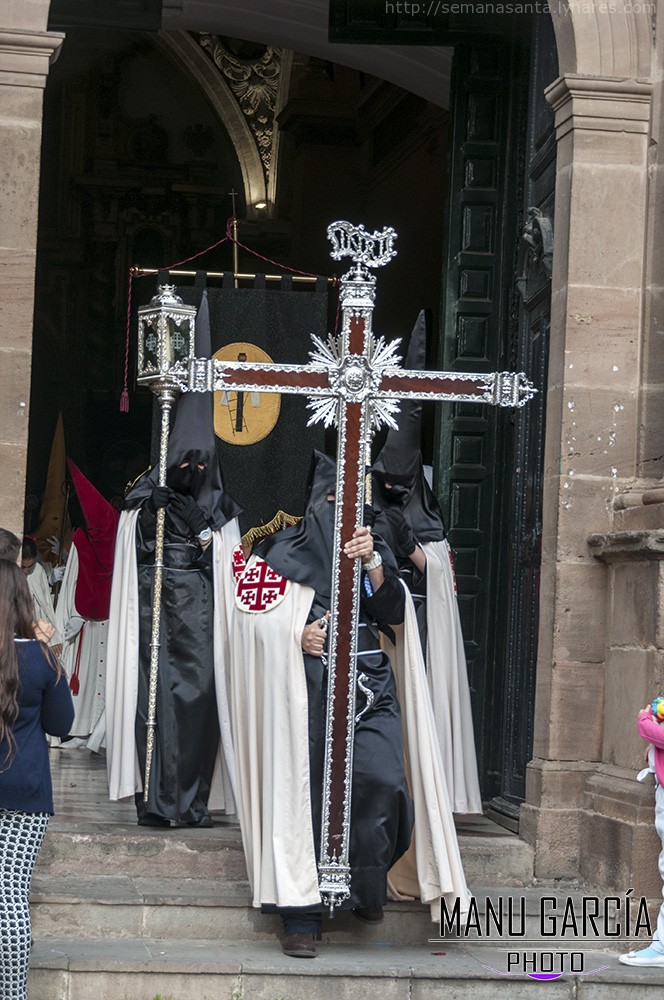 A las siete de la tarde, primero la Banda de Cabecera de la Quinta Angustia, y después los tambores de pellejo de la Cofradía del Santo Entierro, anunciaron en la Plaza de San Francisco que todo se había consumado y Cristo iba a ser llorado por las calles de Linares. Silencio y respeto cuando cayó la noche del Viernes Santo 2015 en la ciudad de las minas.